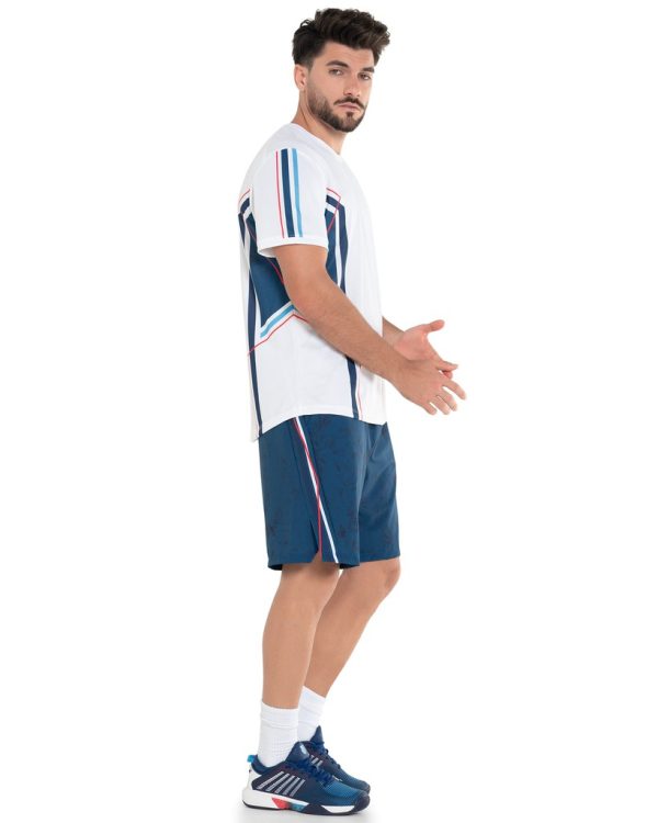 Power meets performance in this performance fabric tee, featuring moisture-wicking, maximum breathability and a fit that floats on the body. The bold geometric color blocking and red tech stripe accentuates the physique, giving you a dominating look for the court.