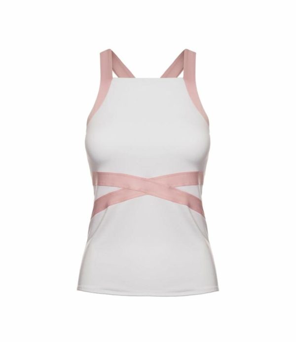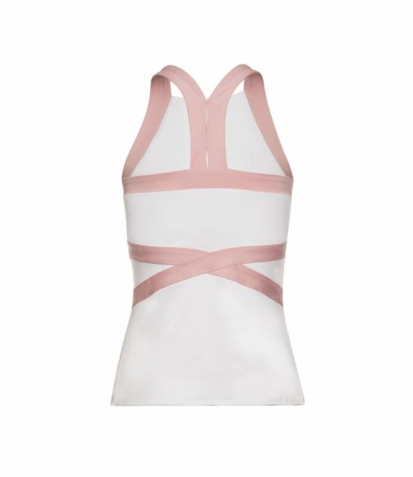 The women’s tennis tank has been updated with a racier compression top. Innovative design, moisture-wicking performance and maximum breathability add an edge to your performance. The sophisticated design features a slightly higher neckline, bold Seashell Pink color blocking and a feminine strap racer back, all to create an edgy look on and off the court. The fabric is also rated UPF 50+ providing added sun protection.