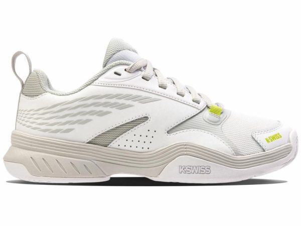 The SpeedEx – an ideal tennis shoe tailored for entry-level players seeking to enhance their performance. Serving as a take down model of the esteemed SpeedTrac, it prioritizes both comfort and stability. Boasting a compression-molded K-EVEA midsole, it ensures a plush and supportive experience throughout your game. Its non-marking Aosta 7.0 rubber outsole, featuring a modified herringbone pattern, strikes a great mix between slide and grip traction across various court surfaces.