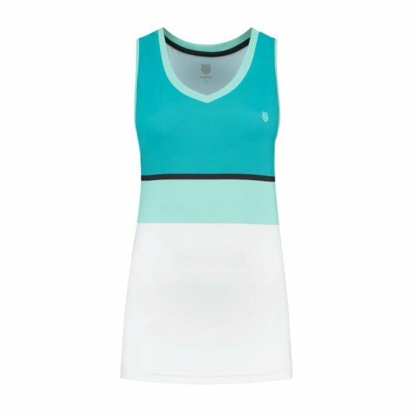 The K-Swiss Hypercourt Stripe Top is part of the colorful Women’s Hypercourt collection. Made of 92% polyester and 8% spandex, this sporty tennis top offers ultimate comfort and a tailored fit thanks to the stretch fabric. The round neckline provides easy accessibility and convenience.
